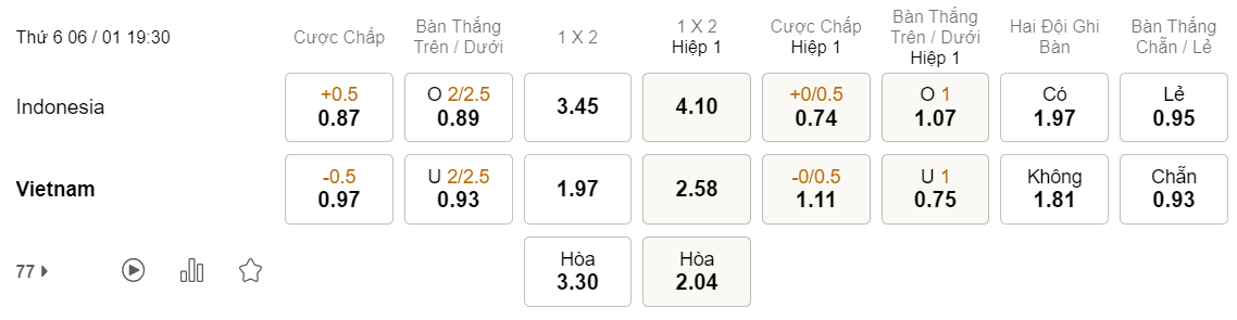 Tỉ lệ kèo Indonesia vs Việt Nam