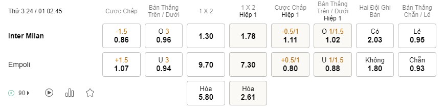 Soi kèo hiệp 1 Inter vs Empoli: 1.11*0.5/1*0.80
