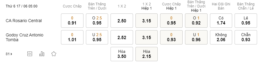 Tỉ lệ kèo Rosario vs Godoy Cruz